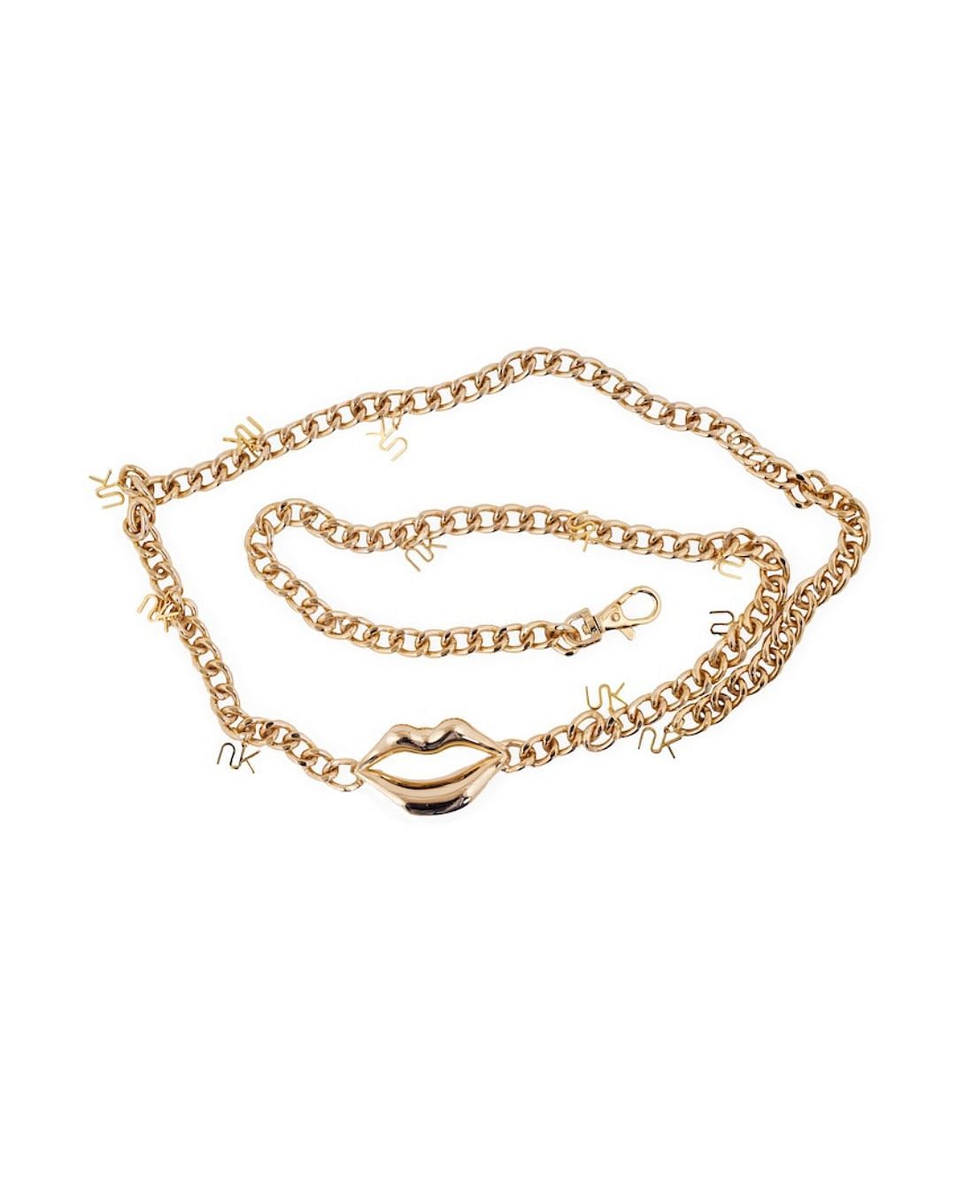 The NK Gold “Lips” Chain Belt is a signature statement accessory designed to elevate any silhouette with bold femininity and refined attitude. Featuring the iconic NK lips motif at the center, this belt blends sensual symbolism with modern luxury. Delicately crafted with a gold-plated chain and accented by hanging NK initials, it embodies the brand’s unmistakable identity—confident, playful, and couture-inspired. Perfect worn at the waist or low on the hips, this belt transforms dresses, tailoring, and evening looks into a striking fashion moment.